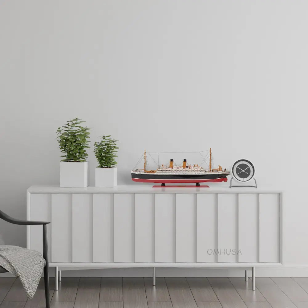 The Empress of Ireland was involved in one of the worst peacetime shipping disasters of all time. She was built in 1906 for the Canadian Pacific Railway Co... This model is fully assembled and is 100% hand built from scratch using "plank on frame" construction method. Our master craftsmen have spent more than 75 hours to finish it. This model was painted in red, white and black, the original colors.